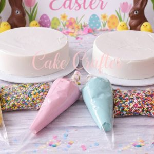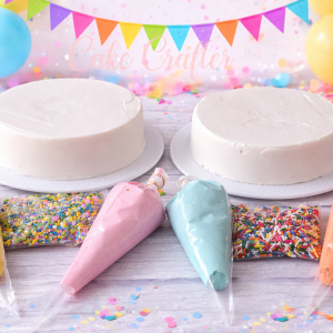 Cake Decorating Kits: Tell me the flavor and icing you want and I will put together everything you need including a pre-iced cake that you can just start decorating. See my custom decorated cakes page for available flavors. Each kit includes 1 pre-iced cake, 2 bags of icing, and 1 container of sprinkles.