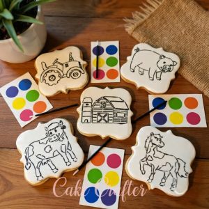 Includes fresh baked cookies that are pre iced and outlined with the picture of your choice and includes the edible paint kit and brush.
